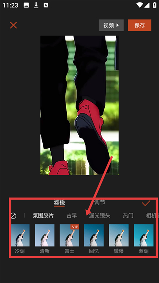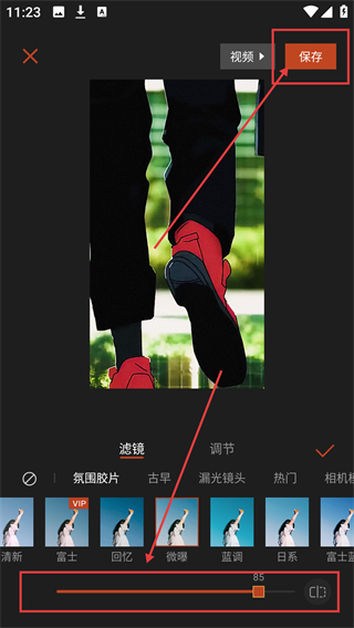 4、调整好滤镜强度后,点击右上角的【保存】按钮,就能把编辑好的视频保存下来啦。
