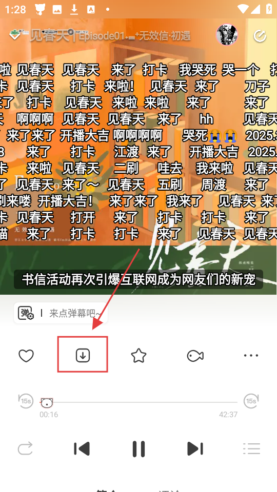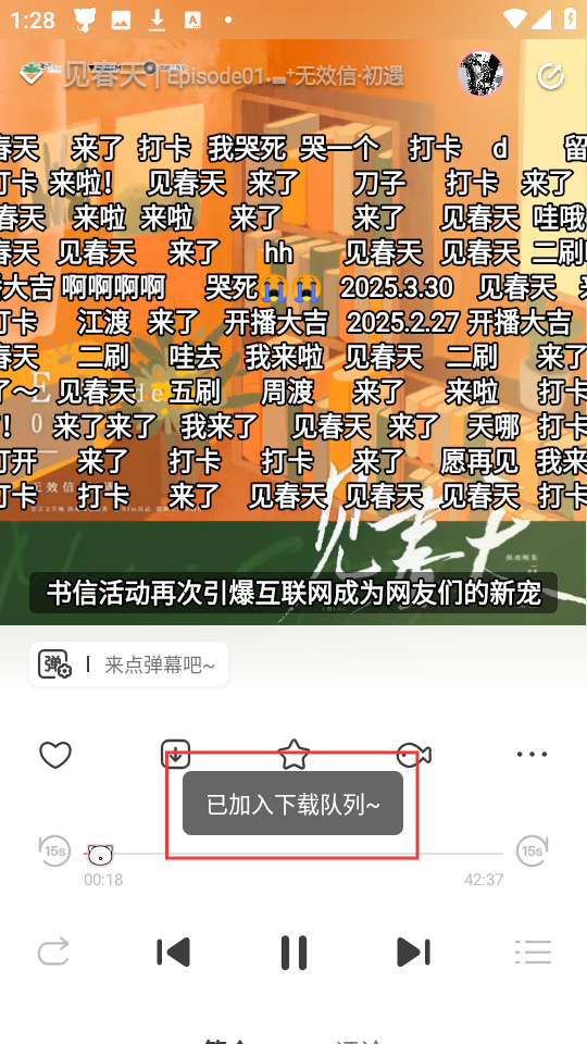 2、进入收听页面后,点击下载按钮,就能把《见春天》加入下载队列哦。