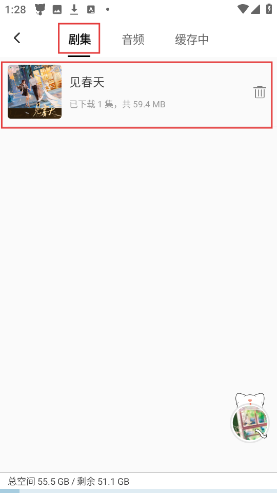 4、在剧集页面,就能看到《见春天》已下载1集,随时可以离线收听哟。