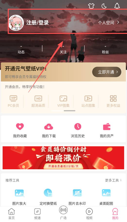 1、注册登录后,如果追求更高质量,可以考虑开通VIP会员,在我的页面有入口,能享受超清画质和专属图集。