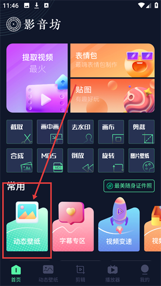 1、在影音坊首页点击【动态壁纸】选项,进入动态壁纸的选择界面,可挑选喜欢的壁纸资源哦。