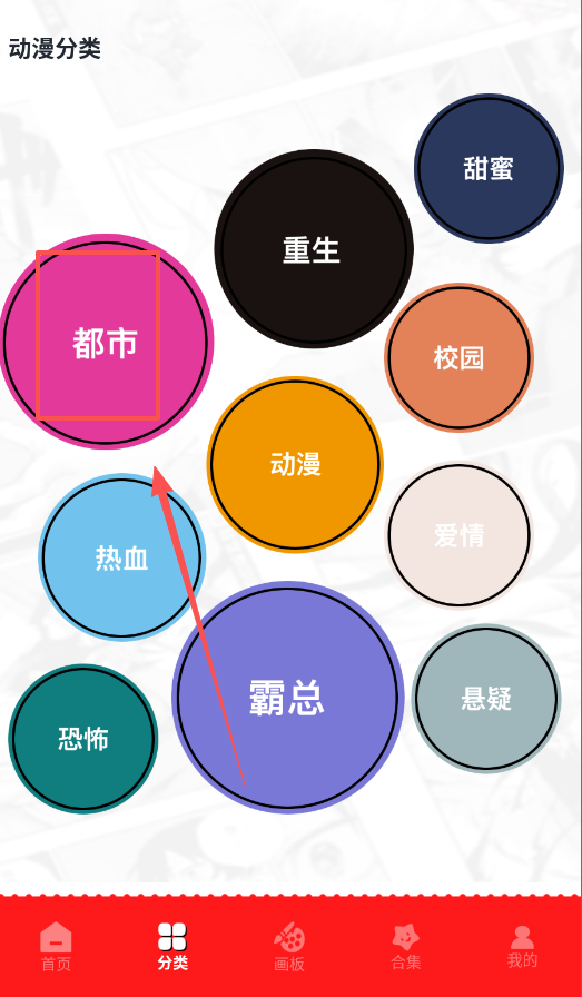 2、在分类界面能看到各种作品推荐,向下滑动会出现动漫、都市等分类入口,点击后还有更详细的恐怖、爱情等子分类。