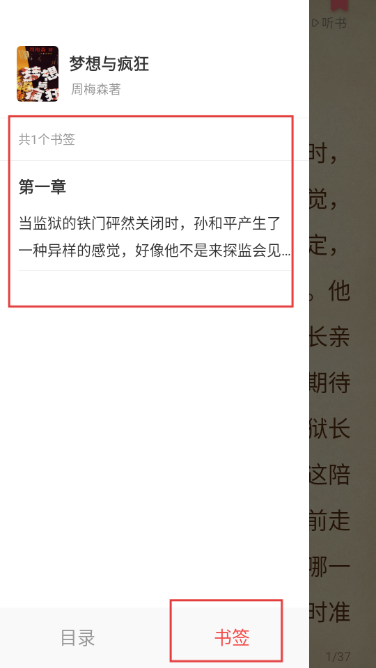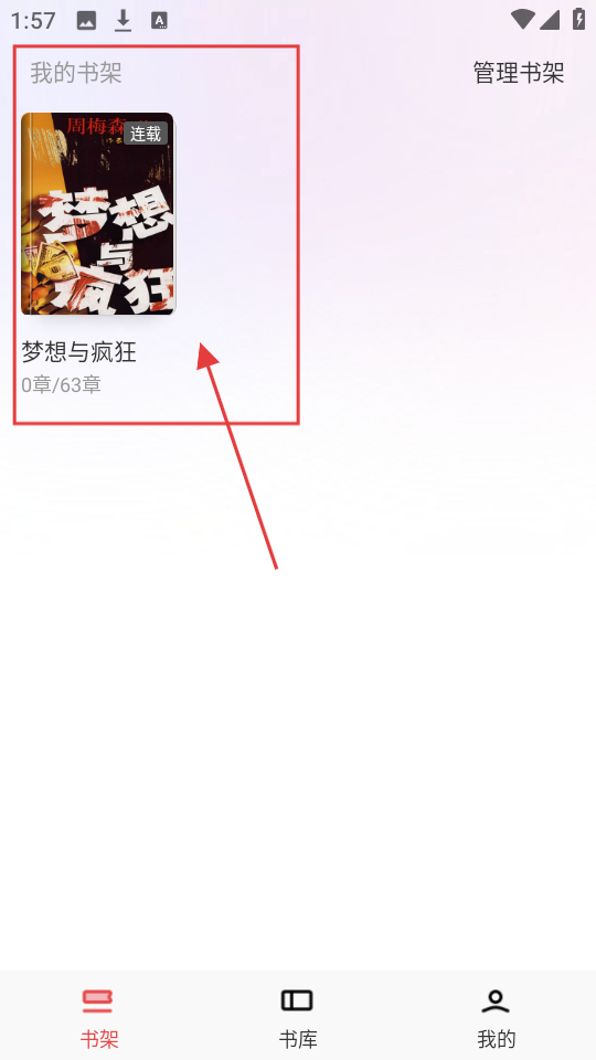 1、书架页面选【梦想与疯狂】,点进去开始阅读吧。