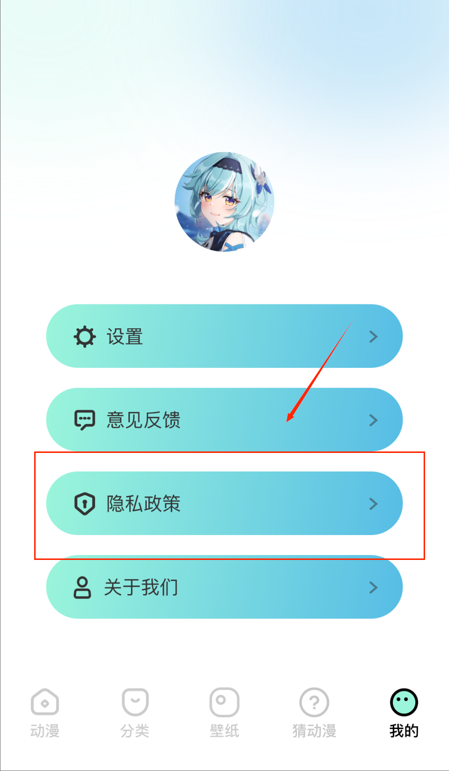 2、学会使用底部导航栏快速切换功能,比如想看壁纸就点壁纸图标,想玩小游戏就点猜动漫图标,多尝试不同页面了解软件全部功能。