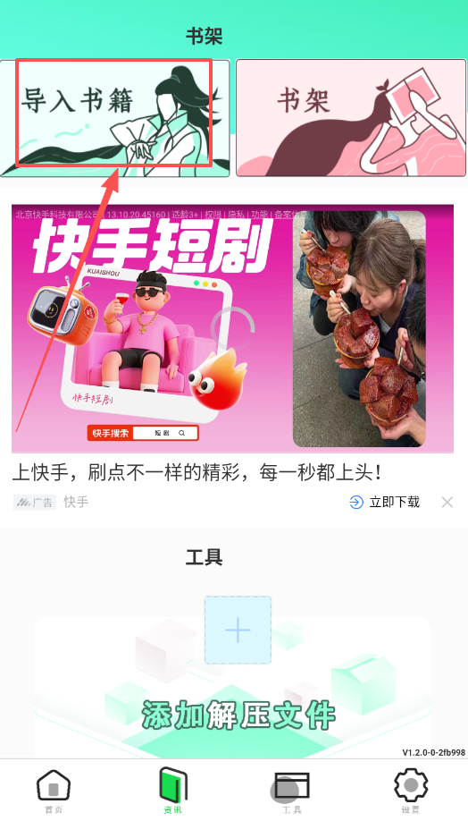 3、把本地书籍导入应用的话,要去书架页面操作,导入后文件会存放在书房里,这样你就能在一个地方管理所有的阅读内容了。
