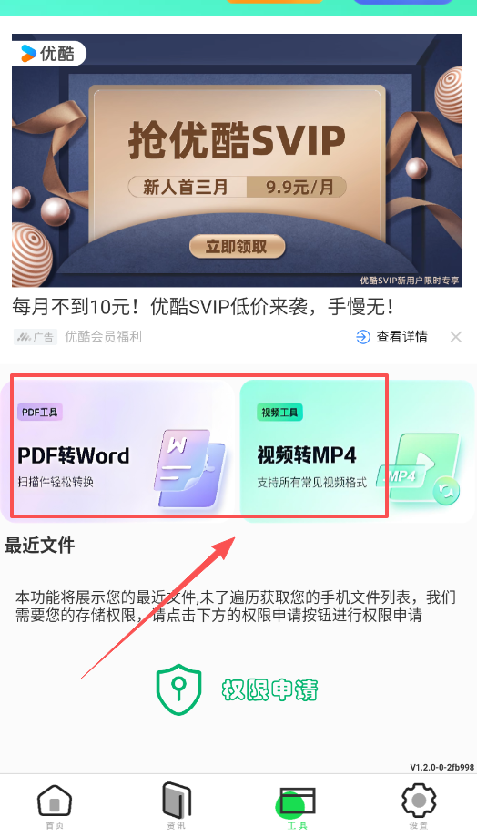 4、工具页隐藏着不少好东西,文件管理能分类整理视频、图片,而PDF转Word和视频转MP4这类小工具。
