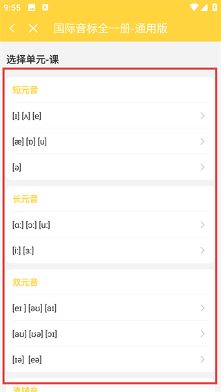 3、在教材选择页,点目标教材(比如【通用版英语国际音标】),就能进入该教材的单元课程页啦。
