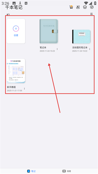 1、进入千本笔记主界面后,点击【创建】按钮就能新建笔记本,开始记录内容啦。