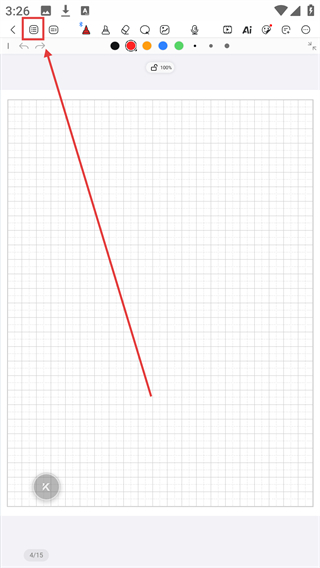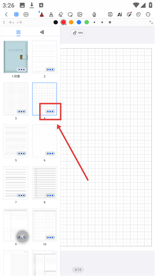 2、进入笔记本编辑页后,点击顶部的页面管理图标,可打开页面列表进行页面操作哦。
