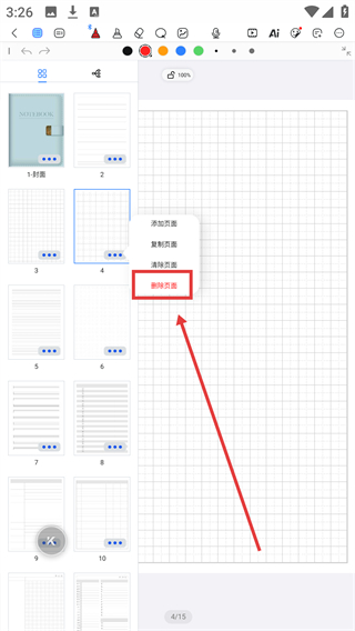4、长按页面弹出操作菜单,选择【删除页面】就能移除不需要的页面,整理笔记结构啦。