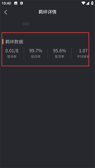 3、点击目标羁绊,进入羁绊详情页,可查看该羁绊的登场率、前四率等具体数据,了解其强度情况呀。