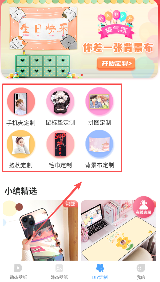 3、它的diy定制功能很有趣呢,不止能做壁纸,还能把喜欢的图印到手机壳和抱枕上,操作很简单。