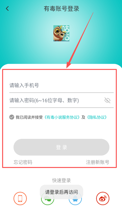 1、首先下载并安装有毒小说,通过简单的注册流程,即可进入丰富的小说世界,随时开启您的阅读之旅。