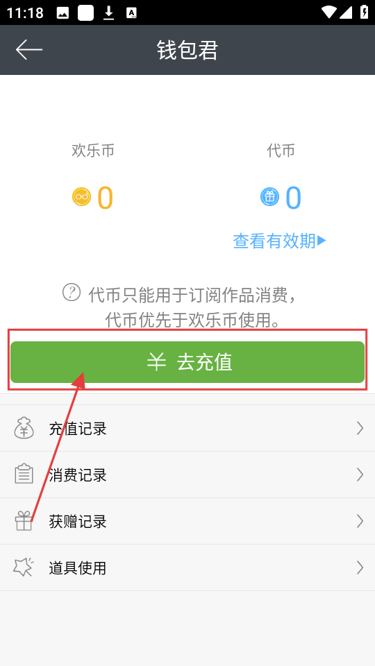 1、在“我的”界面找到【钱包君】,这里能查看欢乐币和代币,想充值就从这进哦。
