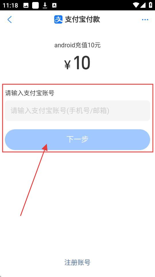 4、选支付宝支付后,输入账号点【下一步】,就能完成充值,很简单呢。