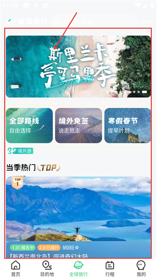 4、切换到【全球旅行】页面,可查看境外旅行项目,选择【全部路线】分类,能浏览更多境外旅行选项啦。
