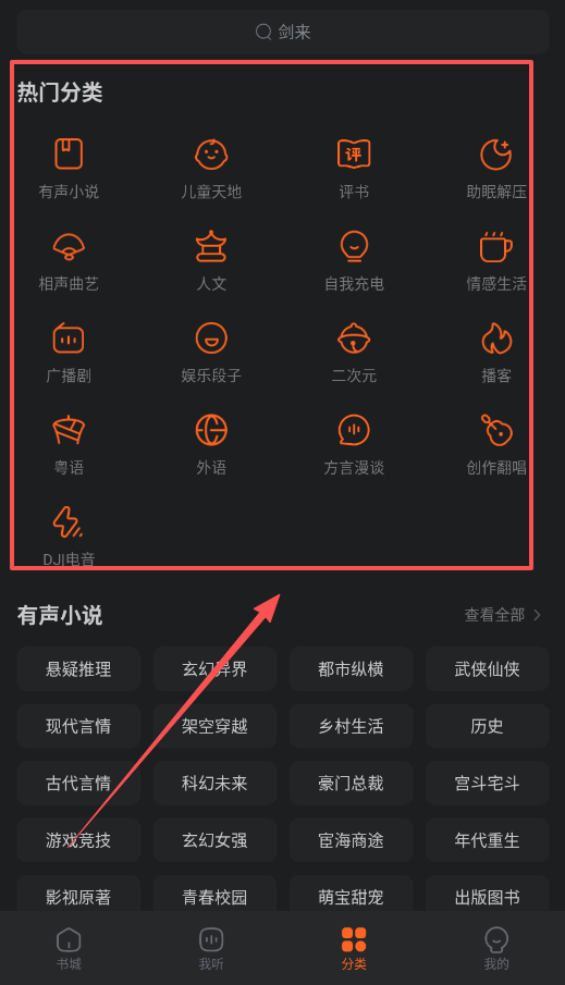 1、除了听书,这个平台还有很多其他内容,在“分类”里你能找到“助眠解压”、“自我充电”、“娱乐段子”等音频,满足你不同场景下的需求。