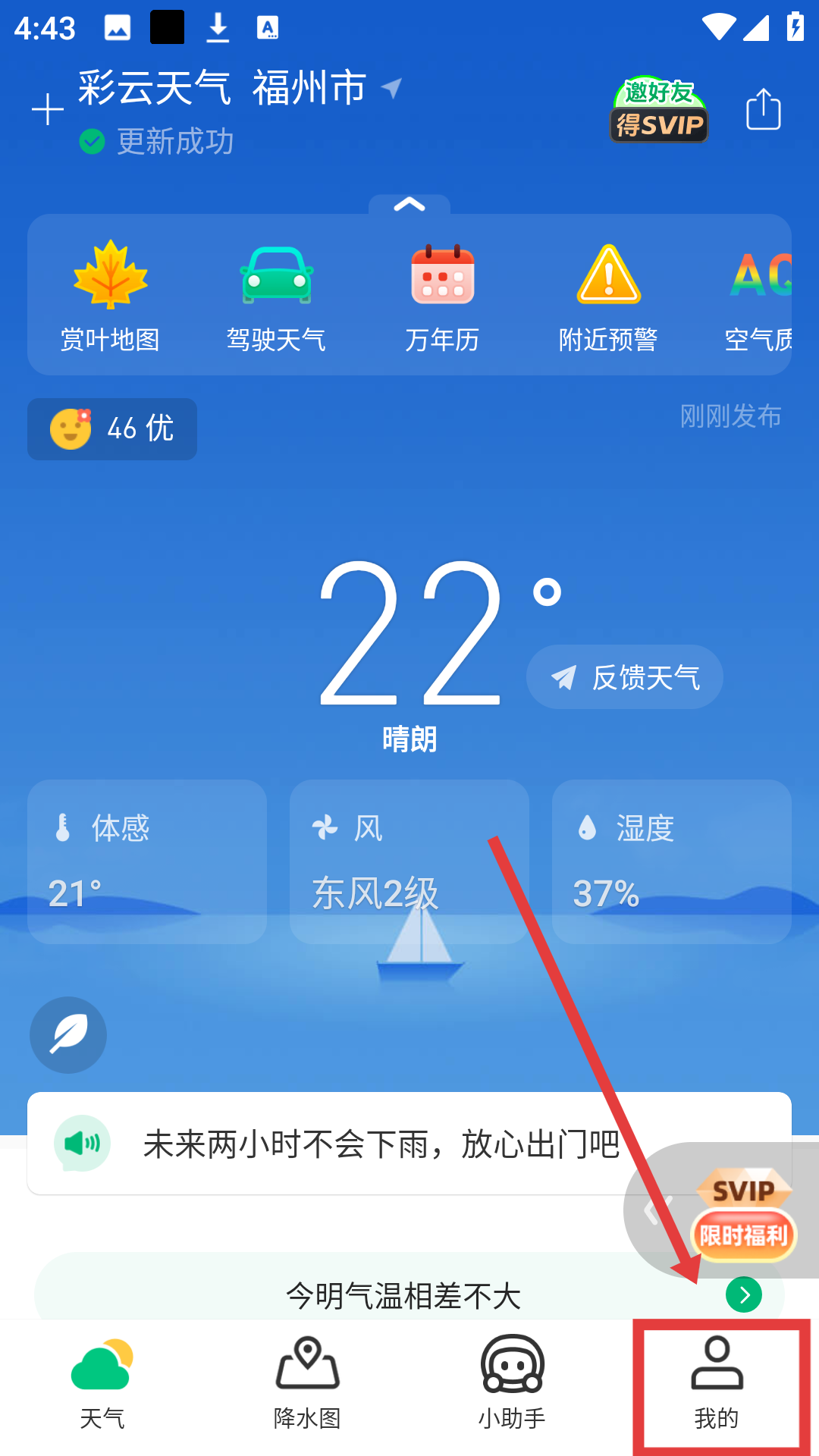1、彩云天气支持观看天气视频内容,支持了解晴朗天气详情,了解天气的情况。
