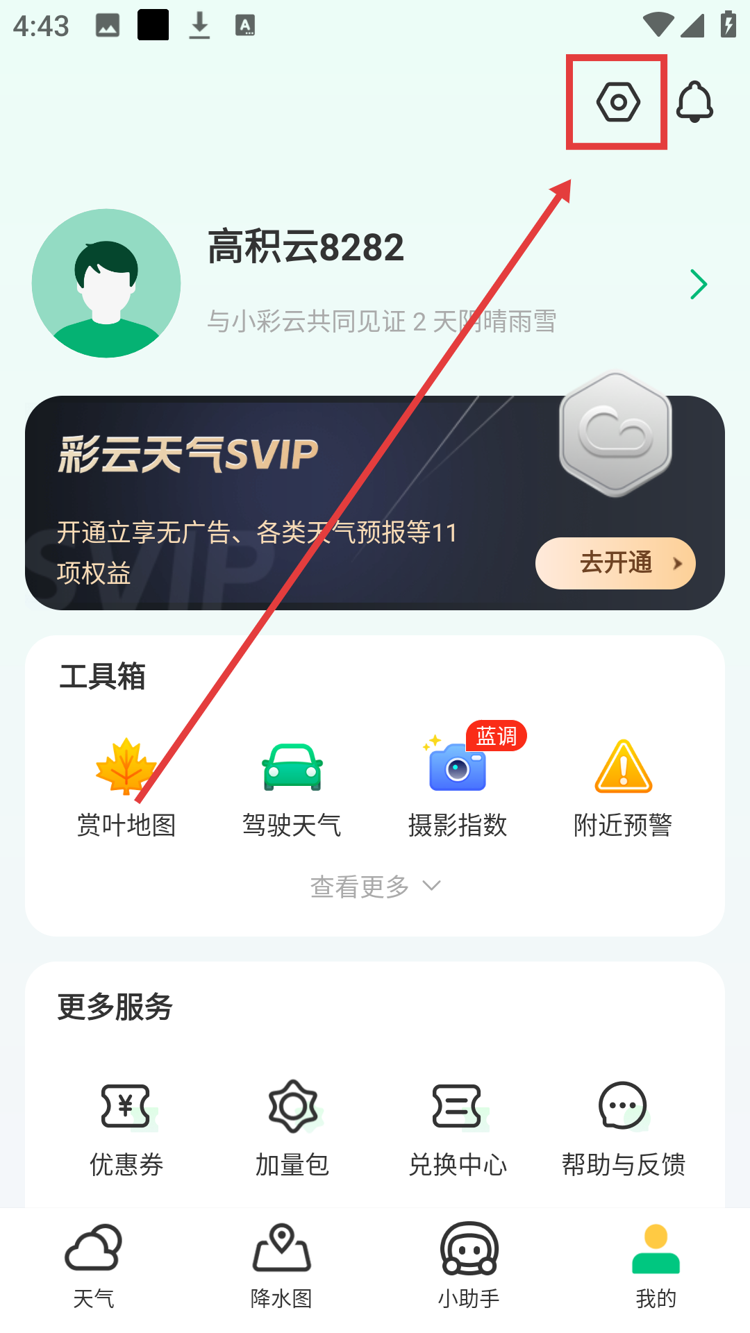 2、在个人界面点击设置图标,进入设置界面,准备调整应用功能啦。