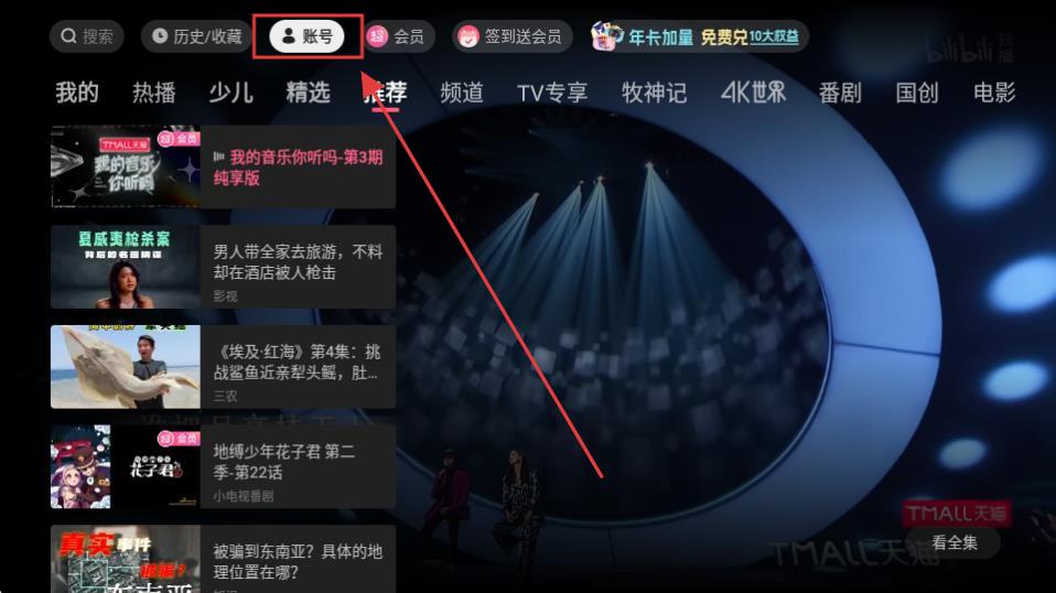 1、打开APP,点击顶部【账号】选项,进入账号相关页面,准备调整播放设置啦。