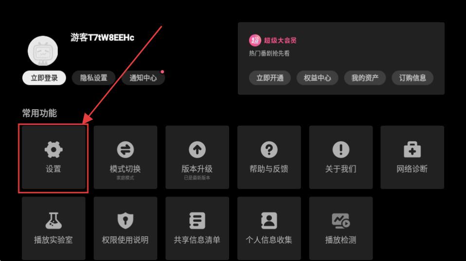 2、在账号相关页面,找到【设置】功能按钮并点击,进入设置页面,可找到播放设置选项哦。
