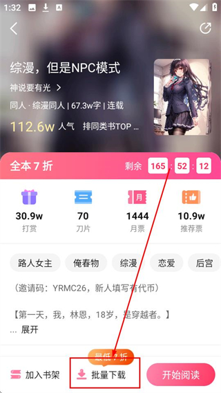 2、点击感兴趣的书籍进入详情页后,点击【批量下载】,可进入批量订阅页面哦。