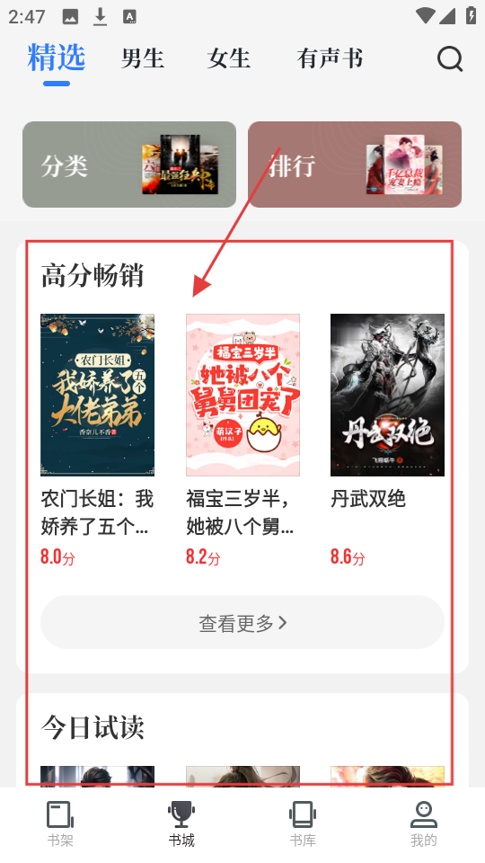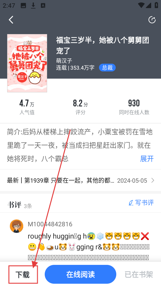 1、书城精选页选《福宝三岁半,她被八个舅舅团宠了》,进入详情页,了解小说信息哦。