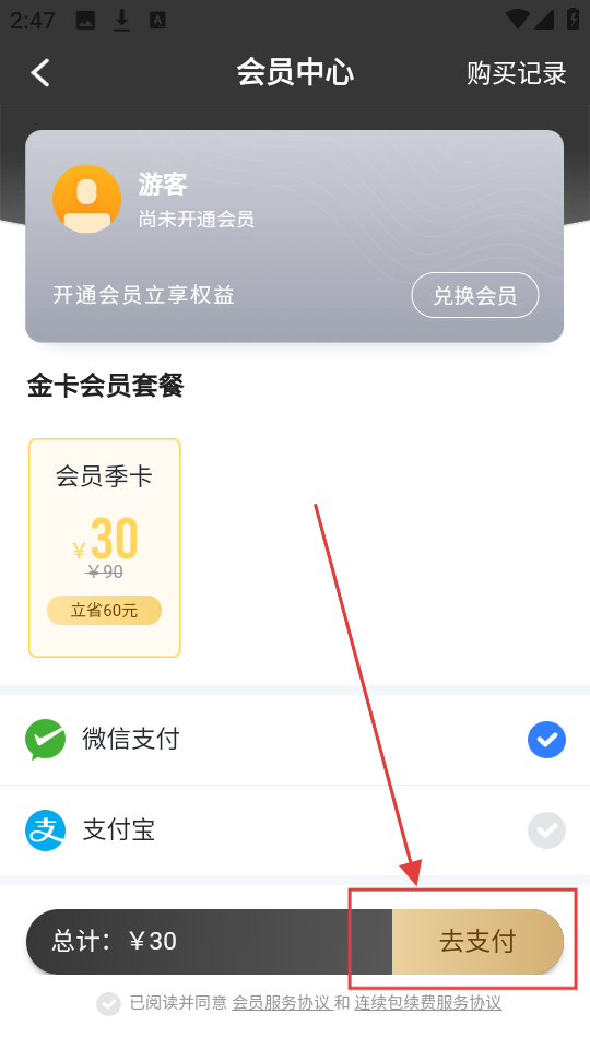 4、会员中心选套餐后点【去支付】,完成支付开通会员,即可下载小说,是不是很赞呀。