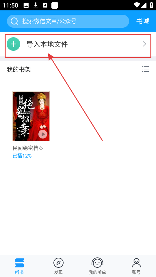 1、在听书页面点击【导入本地文件】,就能开始导入本地的音频或文本文件啦。