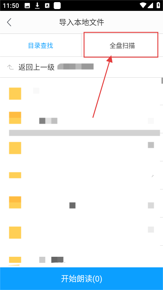 2、进入导入本地文件页面后,点击【全盘扫描】,就能扫描手机里的所有可导入文件哦。