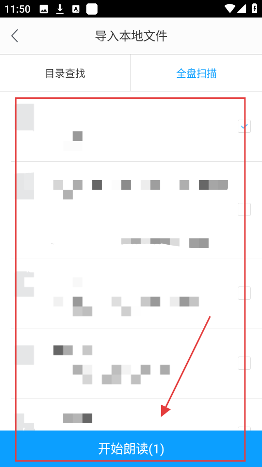 3、扫描完成后,选择要导入的文件,点击【开始朗读】,就能开始听书啦。