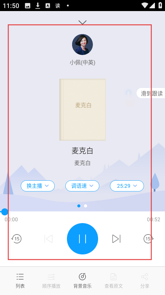 4、在朗读界面,能看到主播、语速等设置,还能切换主播、调整语速,让听书体验更舒适哦。