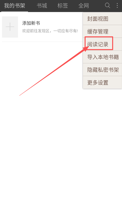 4、书架页功能丰富,可切换封面视图、清理缓存、查看阅读记录,还能导入手机本地书籍,实现一站式管理。