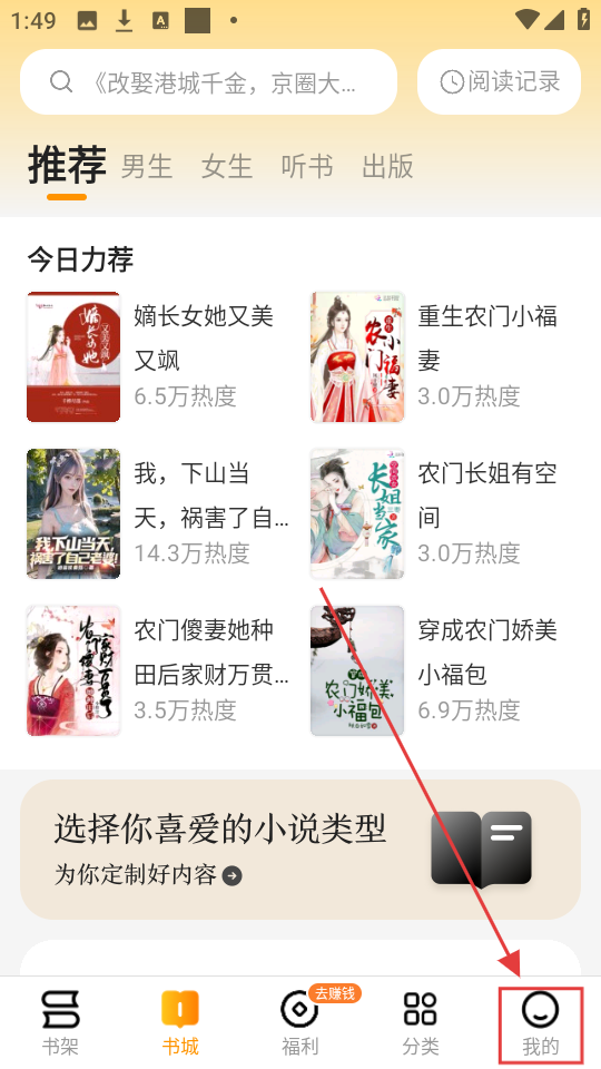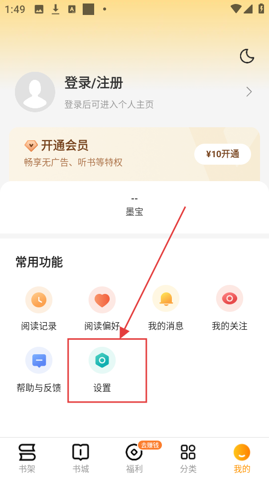 1、在书城页面点击右下角【我的】按钮,进入个人页面可进行设置等操作哦。