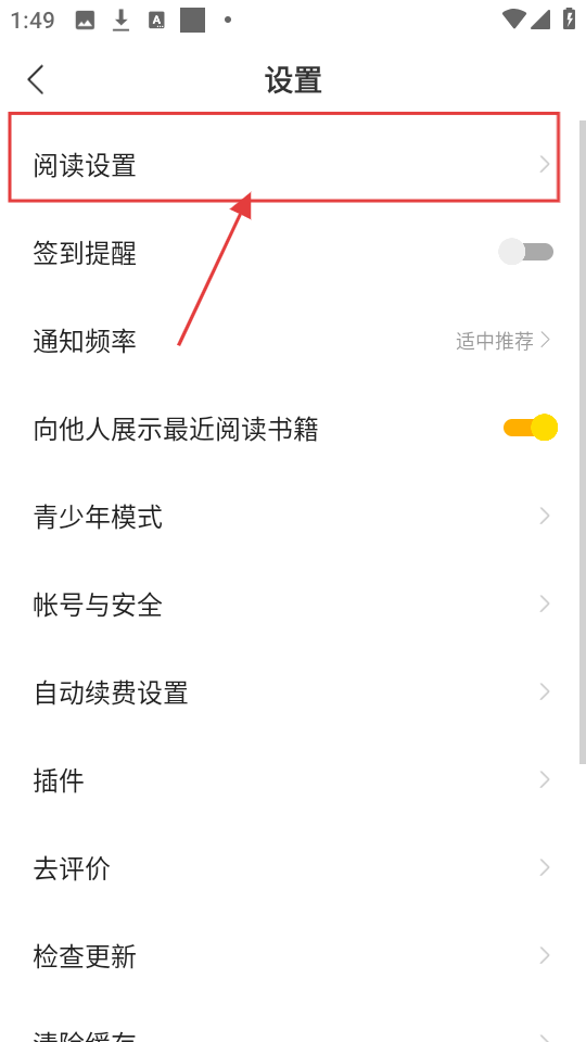 3、在设置页面点击【阅读设置】选项,进入后可调整阅读相关的设置哦。