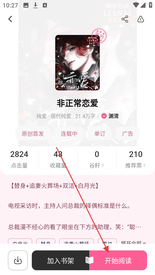 2、小说详情页点【开始阅读】,就能进入阅读界面,开启阅读之旅哦。