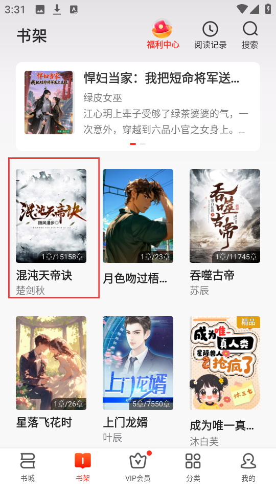 4、之后进入书架页面,就能看到刚才加入的小说,方便后续阅读啦。