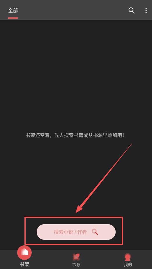 2、添加完书源后,返回首页的“书架”板块,如果书架是空的,别着急,很快就能找到你想读的那本书了。