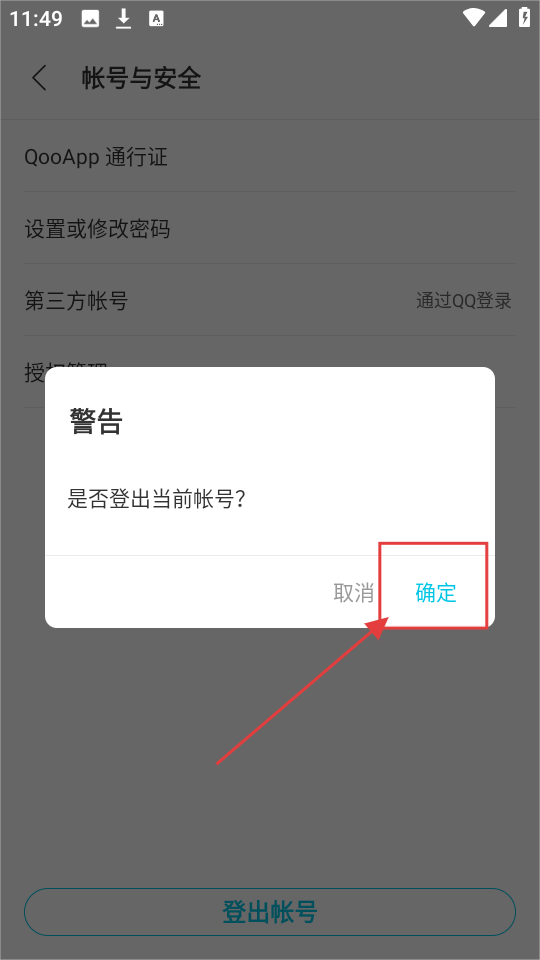 3、在登出确认框中,点击【确定】,可完成登出操作,退出当前账号啦。