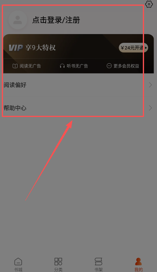 1、首先呢,点击首页的登录或注册按钮,完成账户的创建,这样就能解锁专属特权了,享受更纯净的阅读体验哦。