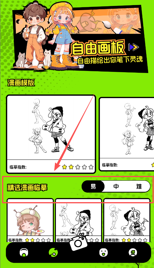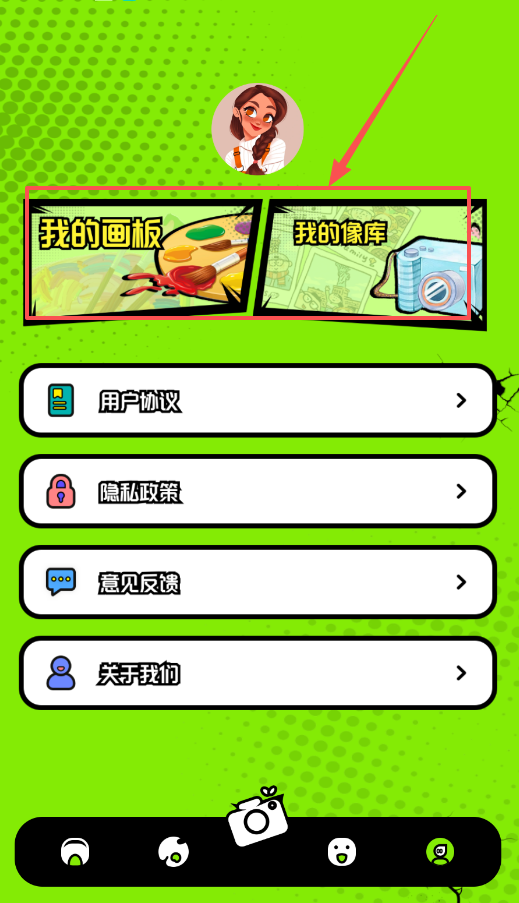 2、想自己动手做,就点开“我的画板”。这里支持照片导入和手绘两种方式,你可以把真人照片变成漫画风格。