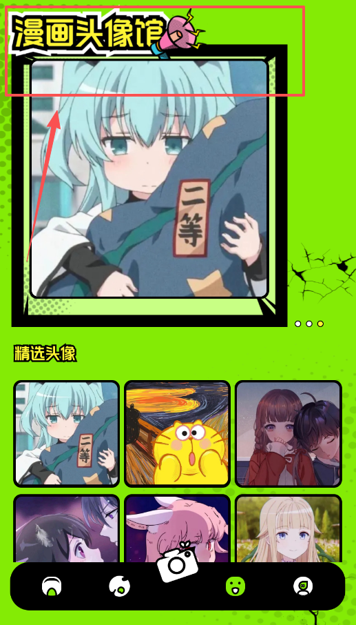 1、打开软件,别被界面吓到,最先看到的就是“漫画头像”和“精选头像”这两个大入口。