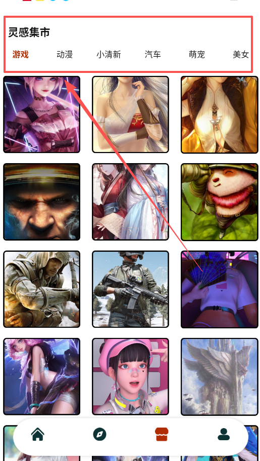 1、全面使用应用需要先熟悉灵感集市的结构,掌握通过分类标签和主题描述快速找到参考素材的方法。