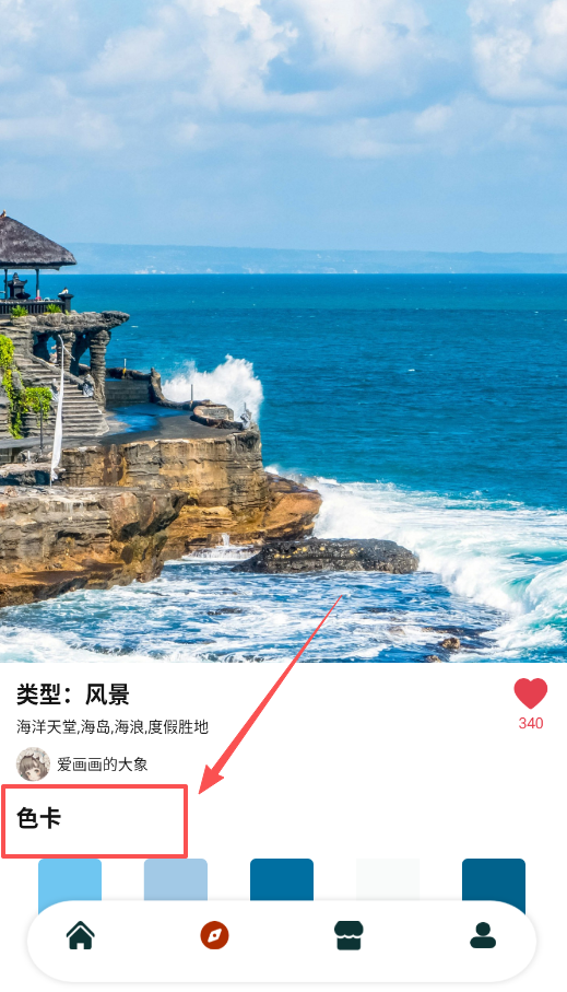 3、配色是绘画的关键,在创作时务必利用“色卡”工具,它能帮你锁定并管理从灵感图里看中的色彩。