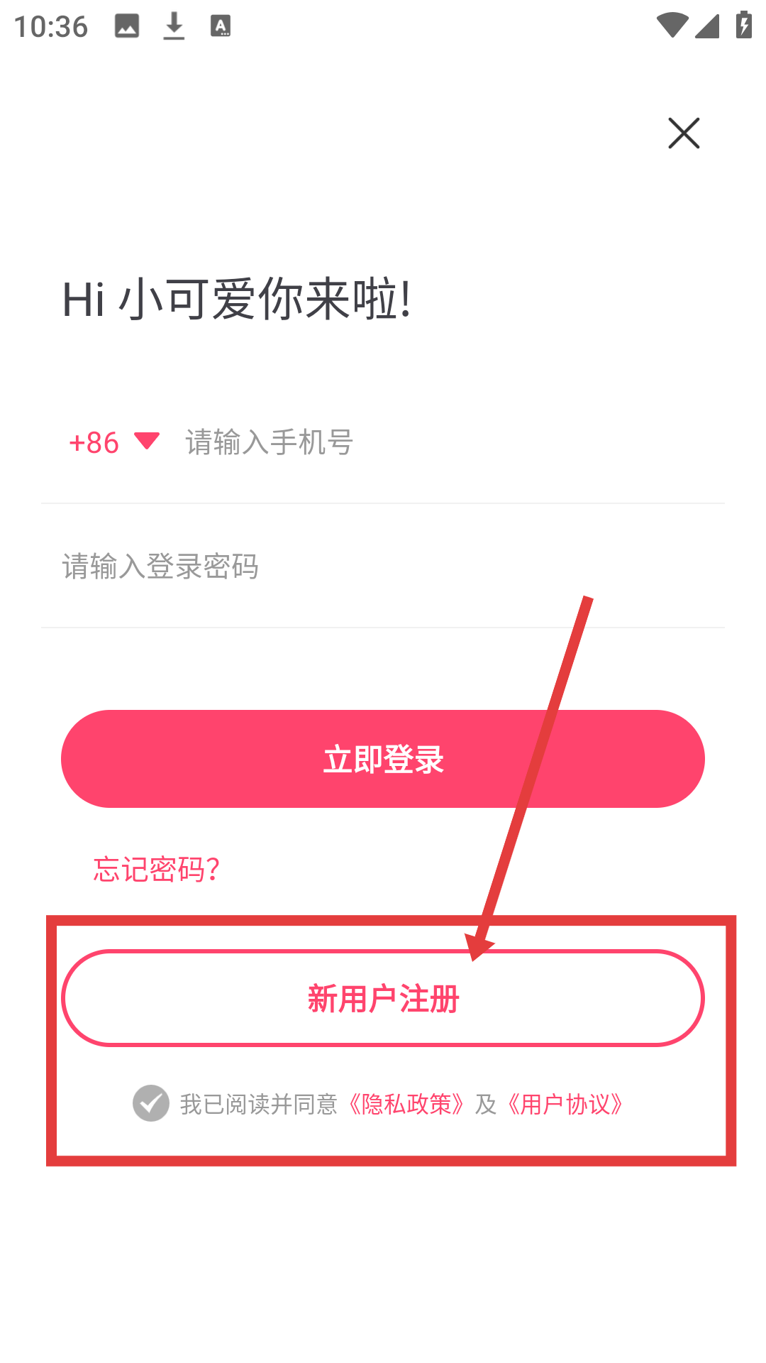 2、在登录注册界面点击【新用户注册】,可进入新用户注册流程啦。