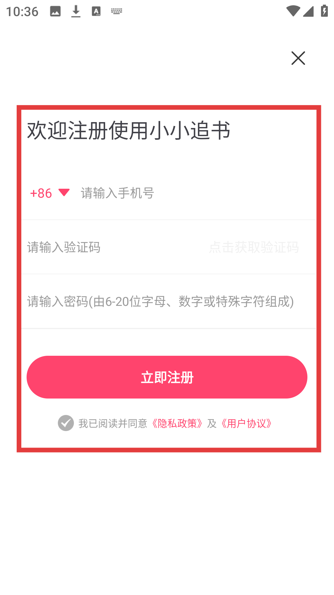 3、在注册界面填写手机号、验证码、密码,点击【立即注册】,即可完成账号注册哦。