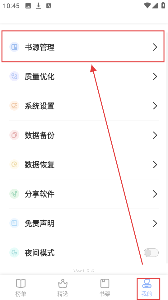 1、在【我的】页面找到【书源管理】,点进去就能管理书源啦,快去试试吧。