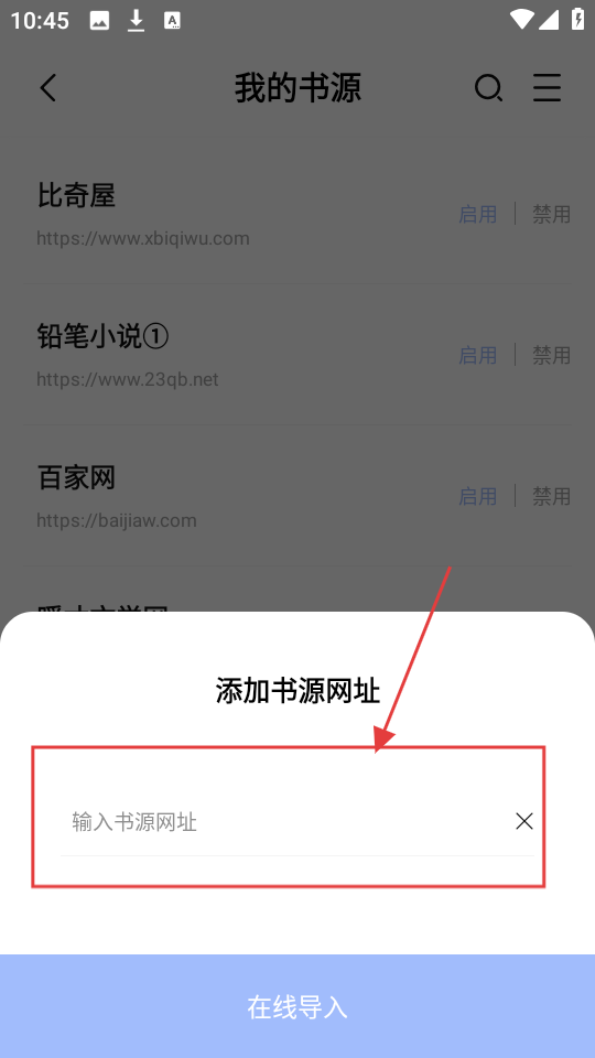 4、在【添加书源网址】框里输入书源网址,就能添加新书源啦,超方便哦。