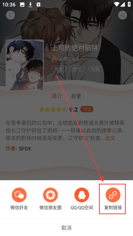 3、在分享选项里,选择【复制链接】,就能把漫画链接复制下来,方便分享给其他人哦。