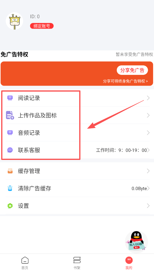 2、接着来看个人中心,点击我的页面,这里功能很丰富,查看自己的阅读和听书记录。